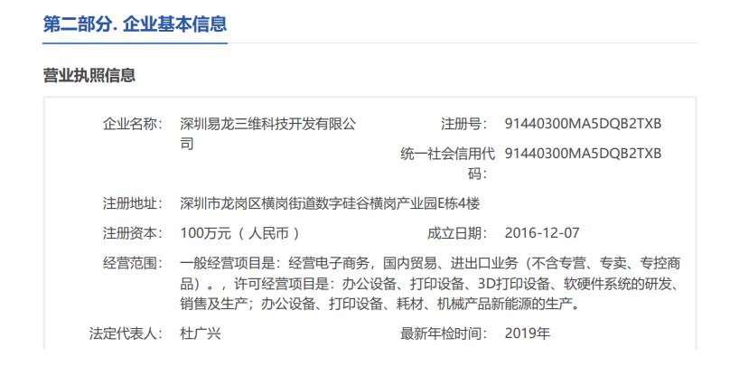 深圳易龍三維科技開發有限公司于2016年12月在深圳正式注冊,是昆明博易創科技開發有限公司全資控股公司。2003—2006年前身是昆明博易創研究所,2006年正式注冊昆明博易創科技開發有限公司。2003—2006年開創制相機或叫萬能打印機,后統一用詞萬能打印機、物體打印機。2009—2012年走上了快速發展階段,市場和名氣在國內迅速提高,2011年日本商家主動到中國來代理我們的產品,三個月后風靡全日本。2011年首家推出小型UV打印機,以后進入輝煌階段,在全國以昆明為總部的前提下陸續設置上海、深圳辦事處。